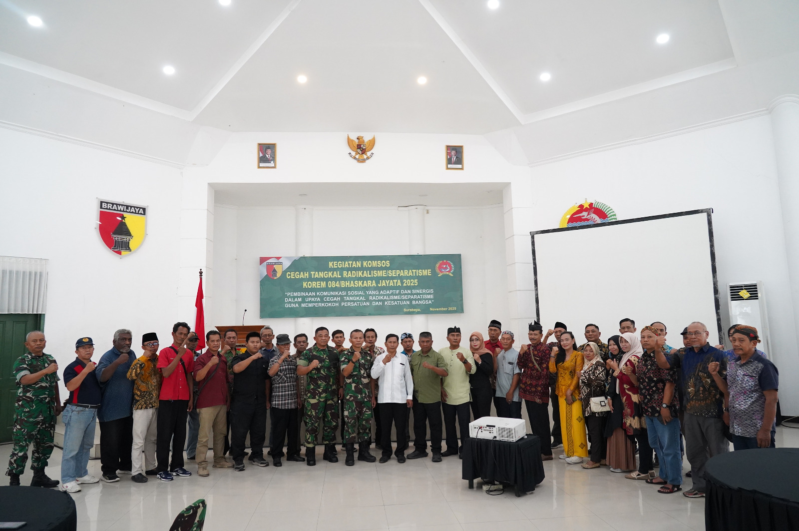 SURABAYA – Korem 084/Bhaskara Jaya menyelenggarakan kegiatan Pembinaan Komunikasi Sosial (Bin Komsos) Cegah Tangkal Radikalisme/Separatisme TA 2025 di Aula Makorem 084/BJ, Rabu (26/11/2025). Kegiatan ini mengusung tema “Bin Komsos yang Adaptif dan Sinergi dalam Upaya Cegah Tangkal Radikalisme/Separatisme Guna Memperkokoh Persatuan dan Kesatuan Bangsa.”