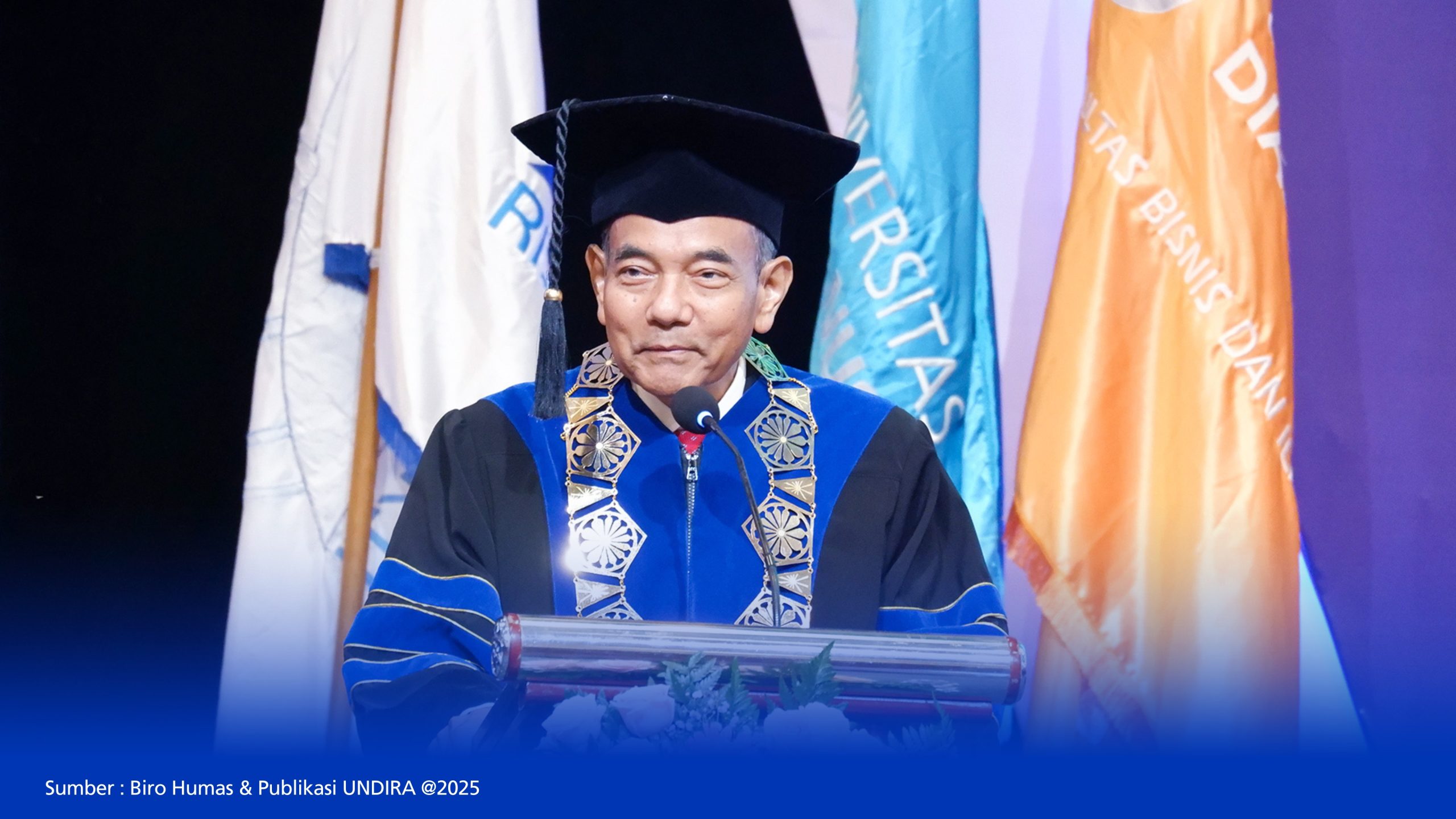 Rektor Universitas Dian Nusantara, Prof. Dr. H. Suharyadi, menegaskan kepada seluruh wisudawan untuk menjadi pencipta solusi, kompas moral, dan simbol intelektual yang senantiasa berpegang teguh pada nilai-nilai VIP UNDIRA, Visioner, Integritas, dan Profesional, demi kemajuan bangsa dan negara.