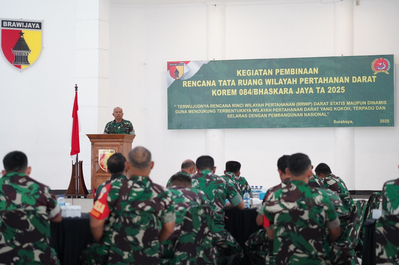 Hariannetwork.com – Surabaya, Korem 084/Bhaskara Jaya menggelar kegiatan Pembinaan Rencana Tata Ruang Wilayah Pertahanan (RTRW) Darat Tahun Anggaran 2025 di Aula Bhaskara Makorem 084/BJ, Jalan Ahmad Yani No. 1, Surabaya, Kamis (27/11/2025). Kegiatan ini mengusung tema “Terwujudnya Rencana Rinci Wilayah Pertahanan (RRWP) Darat Status Maupun Dinamis Guna Mendukung Terbentuknya Wilayah Pertahanan Darat yang Kokoh, Terpadu dan Selaras dengan Pembangunan Nasional.”
